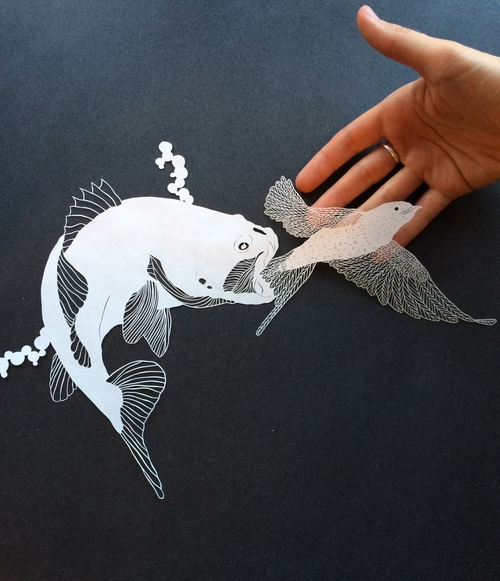 Avec son projet Brave Bird Paperwork, l’artiste américaine Maude White nous transporte dans un univers onirique avec ses créations en papier d’une incroyable finesse : oiseaux, poissons, chouettes, personnages… Ou tout l’art de jouer avec le creux, le vide, le silence, pour donner de la force à la matière.
