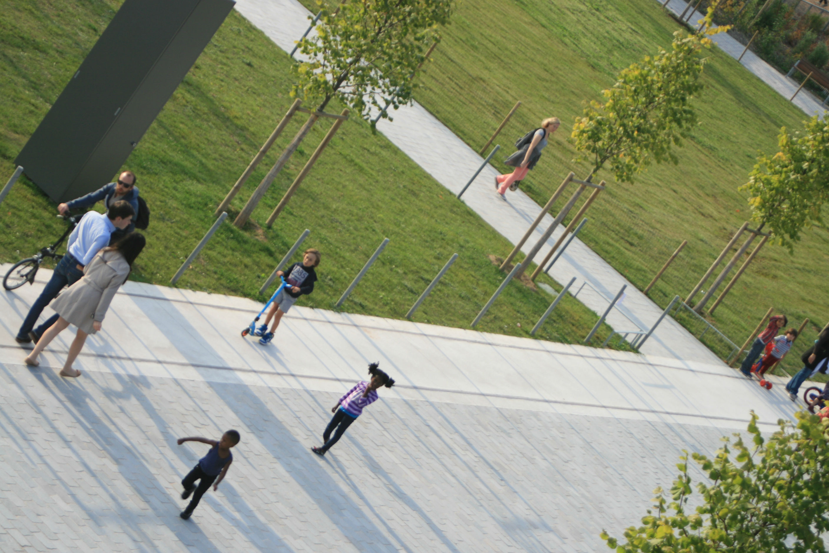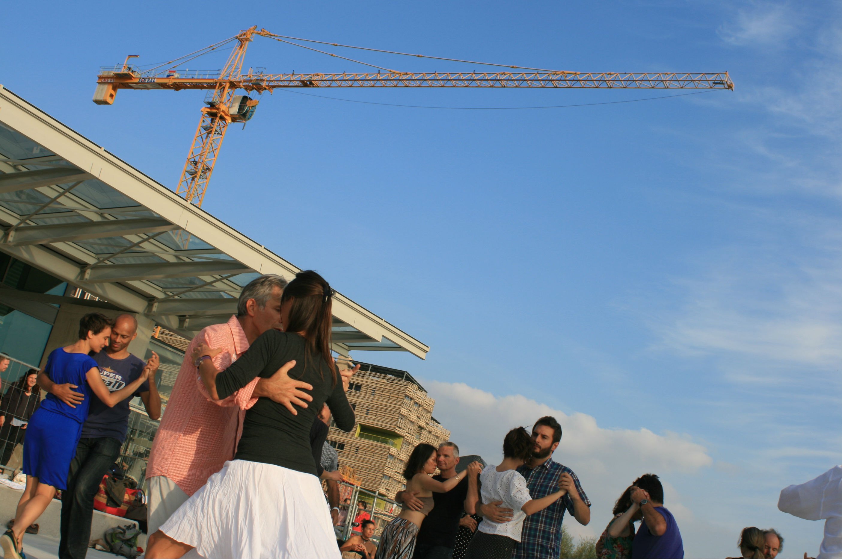 Avec ces nouveaux cours en plein air, je peux vous dire qu’on ne rigole pas sur la passerelle ! On sourit plutôt. On se lance même des regards complices et coquins. On se renarde, quoi. Mais toujours avec sérieux et élégance. Je vous conseille très vivement de venir voir valser ces couples (ou futurs) dans ce cadre exceptionnel en perpétuelle évolution. En revanche, à moins d’avoir les moyens de payer 10 000 euros du mètre carré, ne rêvez pas d’acheter le moindre appartement dans les immeubles design et écolo en construction autour du parc. Mais pour boire une bière à la fraîche les pieds dans l’herbe, c’est parfait !