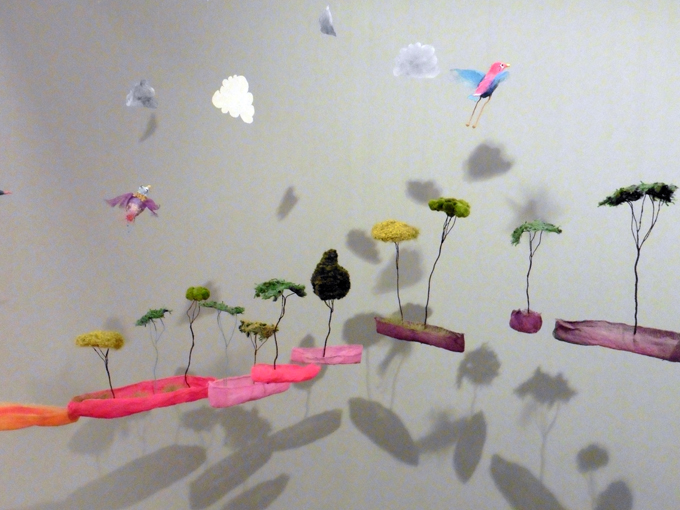 Sophie Touret : « Cette installation s’appelle « C’est moi le plus fort ! » : le crocodile fait homme ou l’homme mutant en crocodile. J’ai eu envie de pousser à l’extrême le » toujours plus » avec un personnage qui représenterait la folie et la cruauté (déguisée). Le crocodile se camoufle, glisse invisible dans l’eau et saute subrepticement sur sa proie, comme un avocat sur une entreprise en difficulté. Le dédain de l’Homme et son équilibre dans le milieu des affaires me met hors de moi. Alors je rêve que les merveilles de la Terre se sauvent s’installer ailleurs dans l’univers et que le crocodile reste seul sur une Terre dévastée. »
