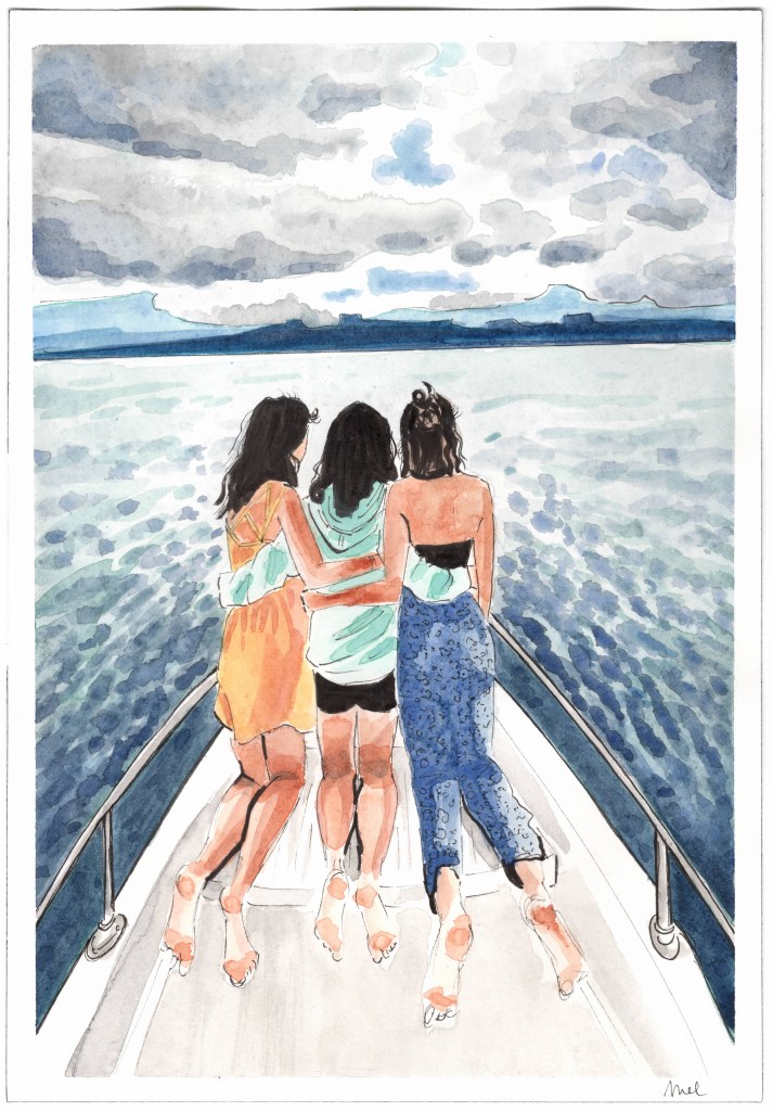 Clémentine, Olivia et Anael : une amitié qui dure depuis la plus tendre enfance (souvenir de vacances au Lac Léman, été 2021).