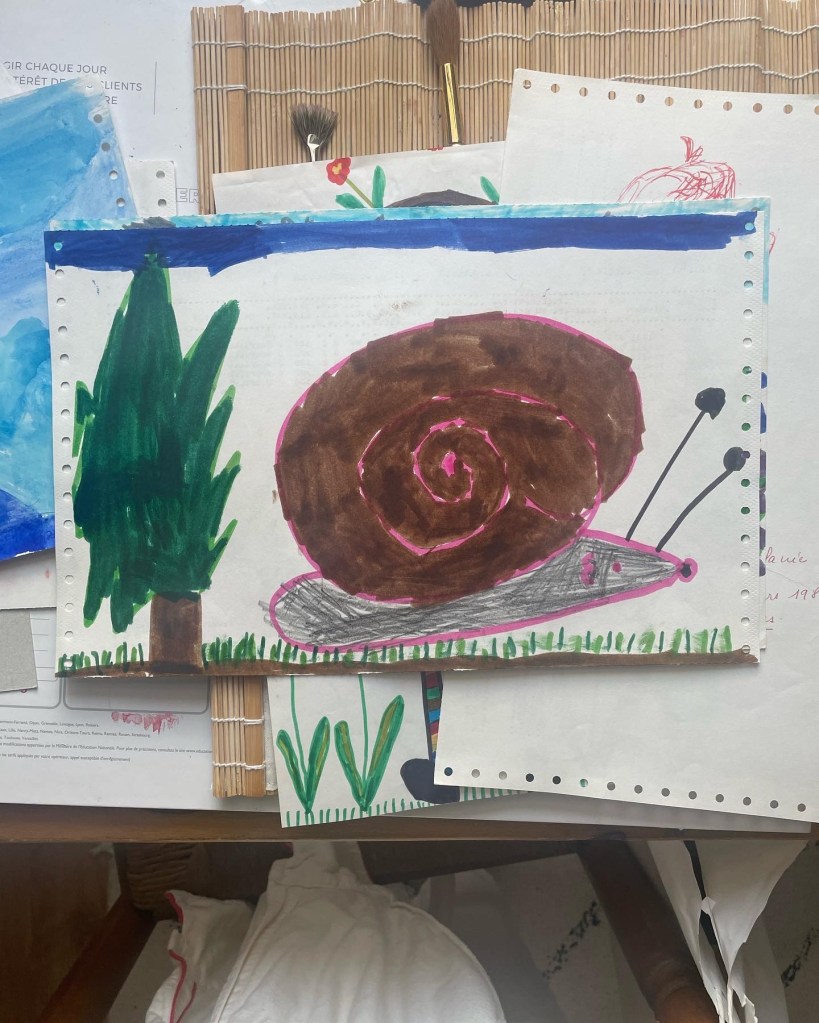 Je vous partage ici une sélection de dessins retrouvés non sans émotion hier dans ma plus précieuse boîte à trésors : une boîte dans laquelle ma mère a gardé TOUS mes dessins d’enfant de 2 à 6 ans.